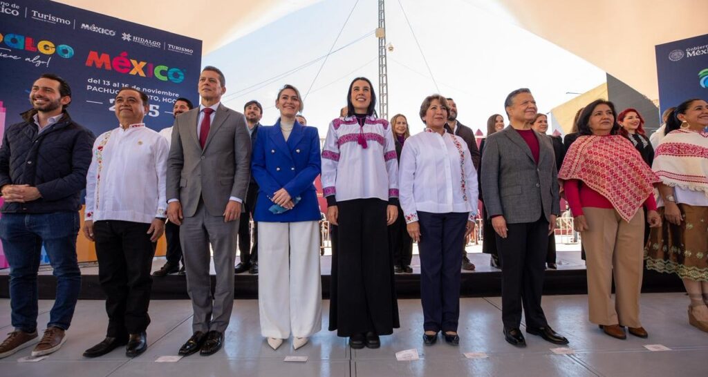 Pachuca, Hidalgo, 14 de noviembre (entresemana.mx). La secretaria de Turismo, Josefina Rodríguez Zamora y el gobernador de Hidalgo, Julio Menchaca Salazar, encabezaron el corte de listón de la 7a edición del Tianguis Nacional de Pueblos Mágicos 2025, un encuentro histórico que reunió a los 32 estados de la República y a los 177 Pueblos Mágicos del país.