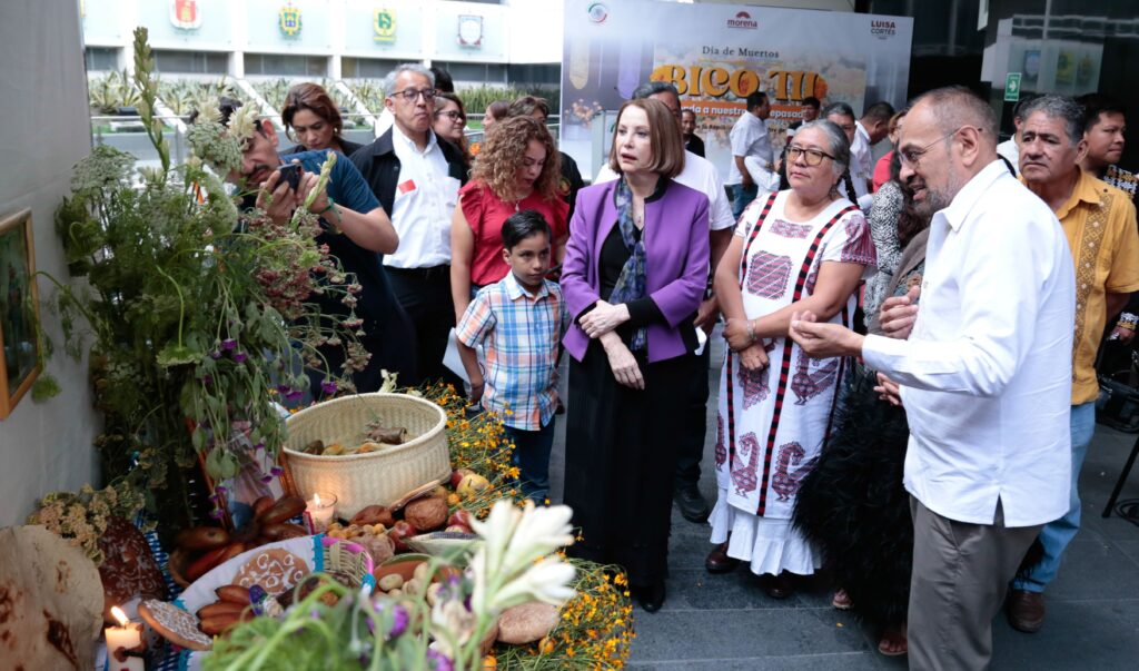 Ciudad de México 21 de octubre (entresemana.mx. Esta tarde se inauguró en el Senado de la República la exposición “BICO TII, Ofrenda a Nuestros Antepasados”, compuesta por siete altares de Día de Muertos que dan muestra de las tradiciones y costumbres que diversas regiones oaxaqueñas realizan en esta fecha para recordar a los seres queridos que han fallecido.