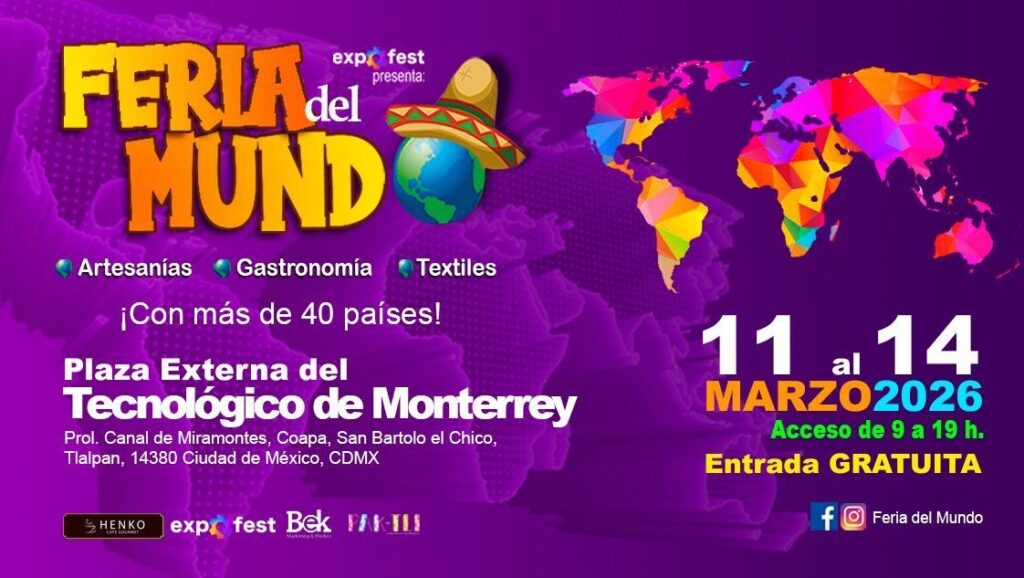 CIUDAD DE MÉXICO, 17 de febrero 2026 (entresemana.mx). La primera gran fiesta multicultural del año llega al sur de la CDMX en un escenario inmejorable. La Plaza externa del Tecnológico de Monterrey, Campus Ciudad de México, ubicada en Prolongación Canal de Miramontes, Coapa, San Bartolo el Chico, en la alcaldía Tlalpan, se convertirá durante cuatro días en el punto de encuentro ideal para disfrutar las expresiones y herencia cultural de Francia, Italia, Colombia, Turquía, Argentina, Nepal, India, Grecia, República Checa, Haití, Japón, Indonesia, China, Rusia, Rumanía, Costa de Marfil, Ecuador, Tailandia y México, entre muchos otros países.