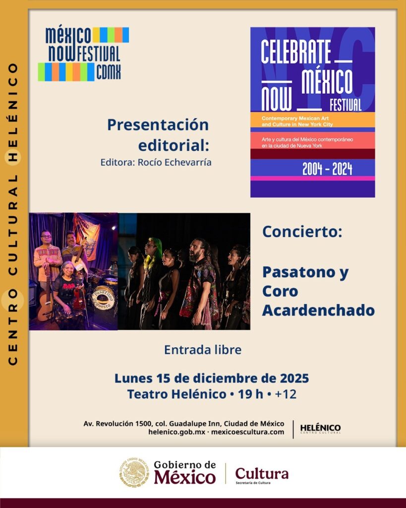 Ciudad de México, 02 de diciembre (entresemana.mx). El Teatro Helénico será la sede de la presentación del libro Celebrate México Now Festival 2004–2024, edición que conmemora dos décadas de este encuentro independiente realizado en la ciudad de Nueva York y dedicado a reconocer la cultura mexicana contemporánea. La publicación reúne entrevistas, fotografías e historias de la comunidad artística en la llamada Gran Manzana. La cita es el 15 de diciembre de 2025 a las 19:00 horas.