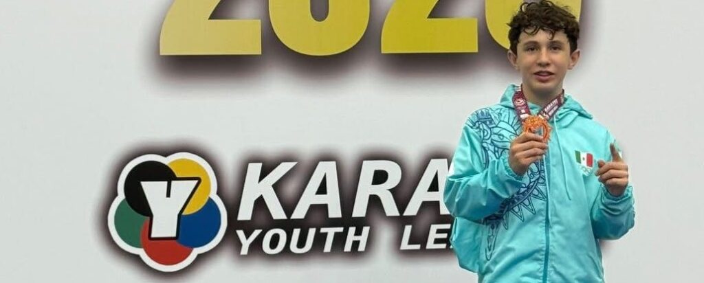 Mérida, Yucatán, 20 de agosto (entresemana.mx). El talento yucateco volvió a brillar en el escenario deportivo internacional con el triunfo del karateka Lucca de la Torre Martínez, representante de México y de Yucatán, en la Youth League de Karate (Liga Mundial de Karate), la competencia juvenil más prestigiosa del mundo, al vencer con habilidad y determinación a oponentes de Perú, México y Croacia en la categoría U-14 más de 55 kilos.
