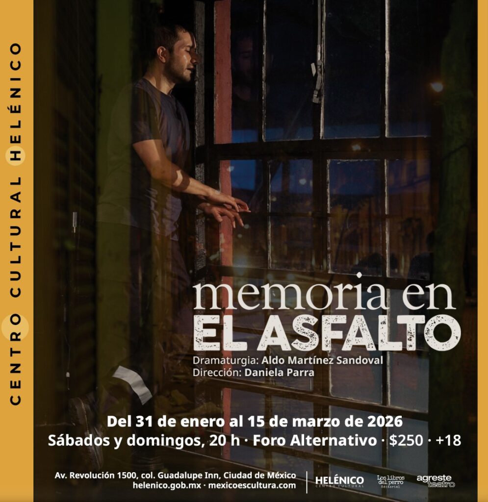 CIUDAD DE MÉXICO, 26 de enero 2026 (entresemana.mx). El protagonista de esta historia tiene una historia de desamor para contarnos, mientras recorre incansablemente el Centro de Ciudad de México relatará el principio de su caída. La compañía Agreste Teatro presenta: Memoria en el asfalto, un monólogo de la autoría de Aldo Martínez Sandoval, bajo la dirección de Daniela Parra; con la actuación de Carlos Ordóñez. El monólogo se presentará los fines de semana del 31 de enero al 15 de marzo de 2025 en el Foro Alternativo.