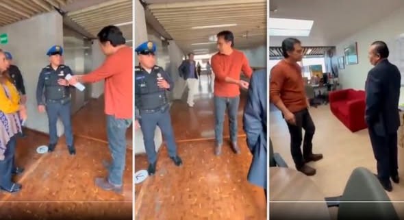 A través de un video subido en Facebook por el propio funcionario, se observa a personal de seguridad que le piden que salga del inmueble ubicado en Av. Universidad 1200