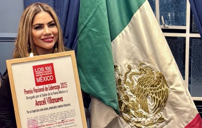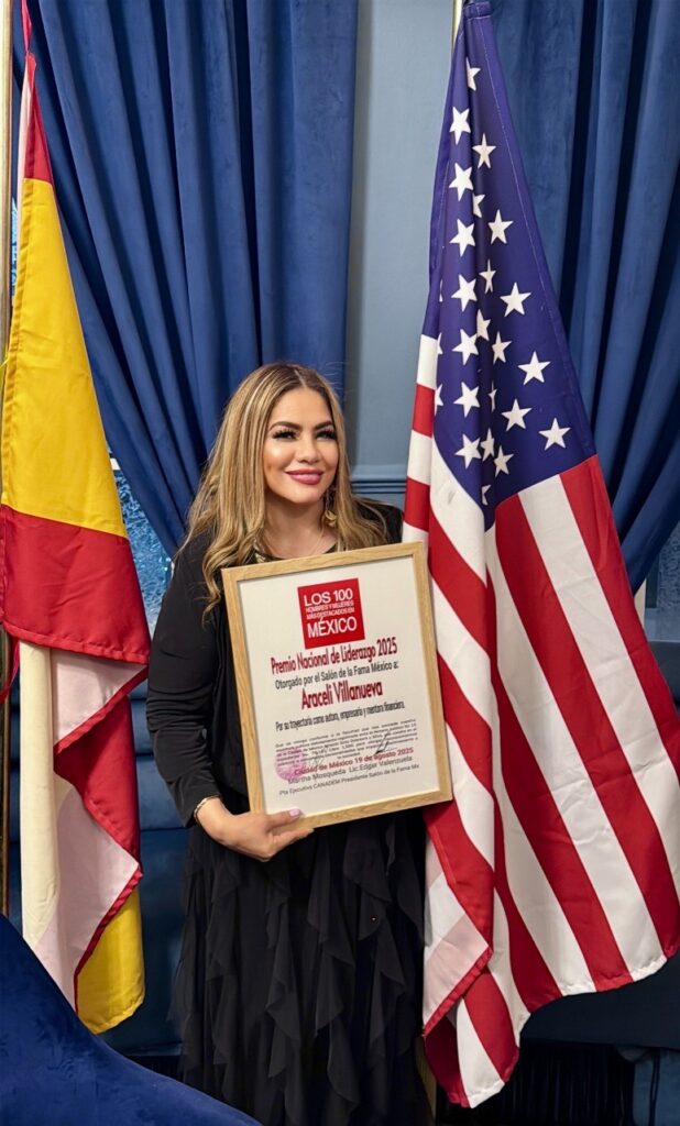 Ciudad de México, 02 de septiembre (entresemana.mx). En un emotivo acto de reconocimiento a la excelencia, el compromiso y la vocación de servicio, Araceli Villanueva León fue galardonada con el Premio Nacional de Liderazgo 2025, uno de los máximos honores entregados por el Patronato del Salón de la Fama de México, como parte del selecto grupo de los 100 Hombres y Mujeres más destacados de México.
